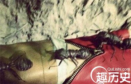 特征:身体乌黑,尾巴血红,普通兵蚁有一个指关节那么大,蚁后有羔羊那么大。一旦群攻,所过之处活物只剩一堆白骨。