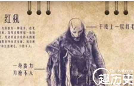 特征:鹰钩鼻,血红怪眼,脸像狒狒,脖子很长,皮肤又黑又硬,身体大小和形状像狗熊,但稍扁,后肢呈弓形,又粗又短,前肢长得出奇。喜欢捕食大蝙蝠、大地鼠和蟒蛇。