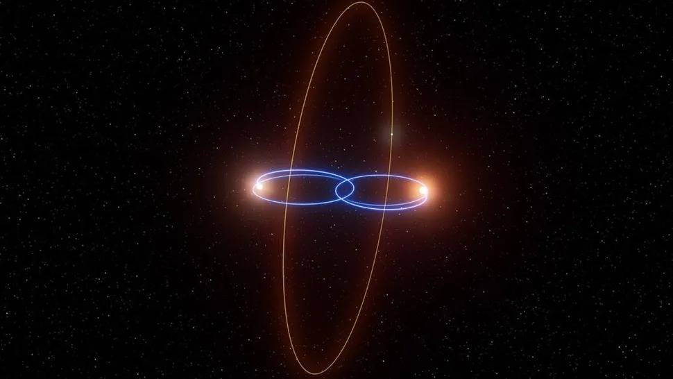 这颗行星的怪异之处,核心在于其反常的运行轨道。在已知宇宙中,围绕双星系统运行的行星并不罕见,但它们的轨道均与双星互相绕转的轨道面大致对齐,即“共面轨道”,这符合天体形成的常规规律。而“2M1510 (AB) b”的轨道几乎与双星轨道面垂直,这种“垂直轨道”在人类观测史上尚无先例。