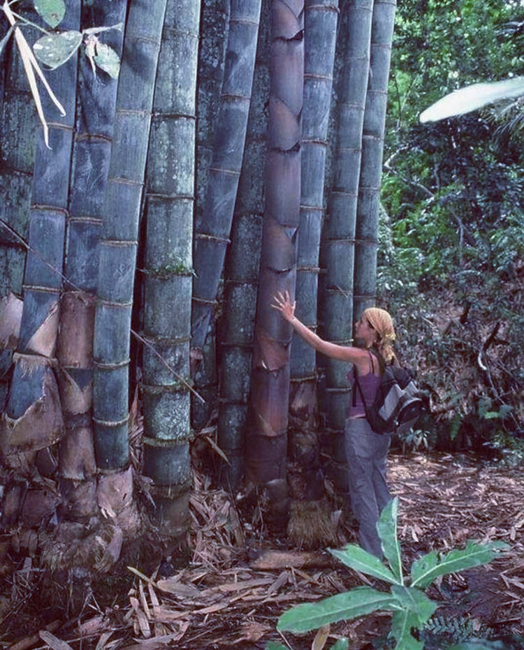 作为世界上最大的竹子,巨龙竹的体型堪称壮观。长成后的巨龙竹通常高达30米左右,竹节长约20多厘米,直径在20至30厘米之间。据已知记录,其最高可达45米,相当于15层楼的高度,直径最高纪录达37厘米,尽显“竹中之王”的气势。