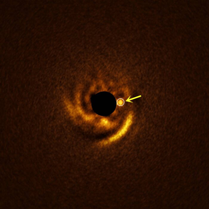 “HD 135344B”距离地球约440光年,是一颗比太阳更庞大明亮的年轻恒星,其质量、半径和光度分别约为太阳的1.5倍、2.1倍和6.4倍。与成熟恒星不同,这颗年轻恒星仍保留着原行星盘——一个由气体和尘埃构成的盘状结构,它如同行星的“摇篮”,盘中物质经长期聚集、碰撞与合并,最终可能形成行星。早在2016年,科学家就发现其原行星盘存在几条螺旋状旋臂,推测这是一颗巨型行星形成时,引力扰动周围物质产生密度波所致,但受观测水平限制,这颗“准行星”始终未现身。