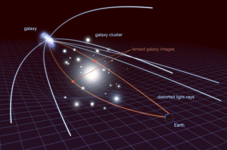 最靠谱的解释,是爱因斯坦曾预言的强引力透镜效应。简单来说,前景的大质量天体如同宇宙中的“哈哈镜”,其强大引力会将时空压出“洼地”,让背景星系的光线被拽弯、放大、分裂,从而形成多个影像,经典的“爱因斯坦十字”就是如此。科学家在78亿光年处发现了四个前景星系,它们本应是这场“光影魔术”的幕后推手。