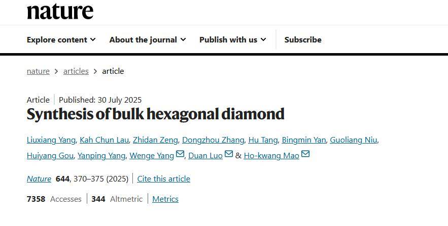 近日,郑州大学联合南京大学科研团队在国际顶级学术期刊《自然》发表重磅成果,全球首次成功合成出毫米级纯相蓝丝黛尔石(六方金刚石),终结了该材料长达 60 年的科学争议,让这种理论硬度远超普通钻石的 “超级材料” 从陨石中的微量存在,变为可人工制备的宏观实体,为超硬材料、极端环境装备等领域开辟全新可能。
