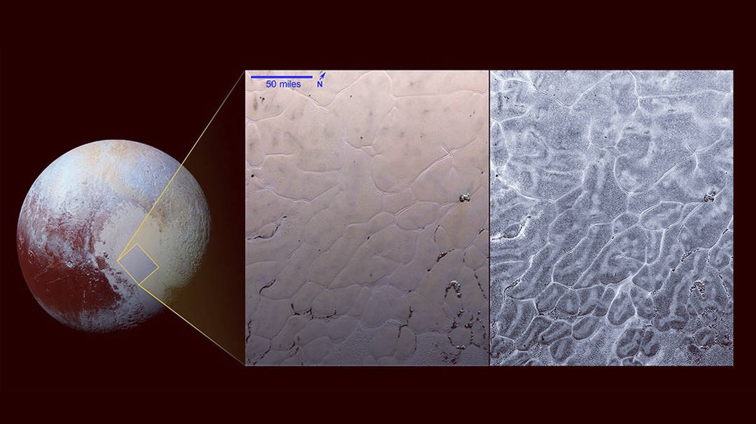“新视野号” 传回的图像中,冥王星表面巨大的心形斯普特尼克平原格外醒目。这片区域异常平整,几乎没有陨石坑,说明地表十分年轻。探测器还观测到高耸山脉、缓慢流动的氮冰与甲烷冰川,以及疑似喷发的 “冰火山”。这些复杂活跃的地貌证明,冥王星并非死寂的冰封星球,其地质活动至今仍在持续。
